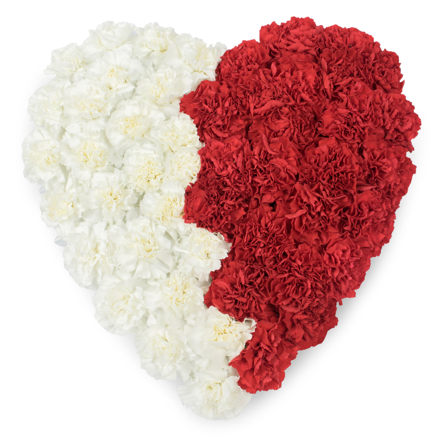 Express your deepest sympathies with our Sympathy Heart Carnations Arrangement, featuring a beautiful blend of white and red carnations arranged in a heart shape. This unique design symbolizes love and remembrance.